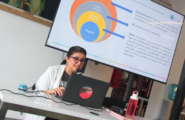 La primera actividad del evento fue la conferencia “Aprendizajes en los procesos de Vínculo con la Sociedad de la Universidad de las Artes”, a cargo de María José Icaza, quien ofreció un análisis de los aprendizajes obtenidos por la Universidad de las Artes en una década de trabajo colaborativo con la sociedad.
