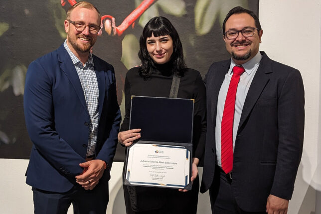 La premiación del concurso se realizó, en marzo de 2024, durante la rendición de cuentas que el Consejo de Educación Superior (CES) hizo en el Centro Cultural de la Pontificia Universidad Católica del Ecuador (PUCE), donde se dieron cita autoridades de varias universidades del país, como nuestros rector y vicerrector académico, William Herrera y Bradley Hilgert, respectivamente.