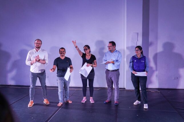 Previa a la presentación, InfoUArtes dialogó con Lorena Toro y Diego Ortega acerca de “Escena Corpolúdica”. Este proyecto de vinculación con la comunidad, señalaron, nació en 2024 y en mayo de ese año entraron a la Casa Hogar Infanto Femenino del MIES.