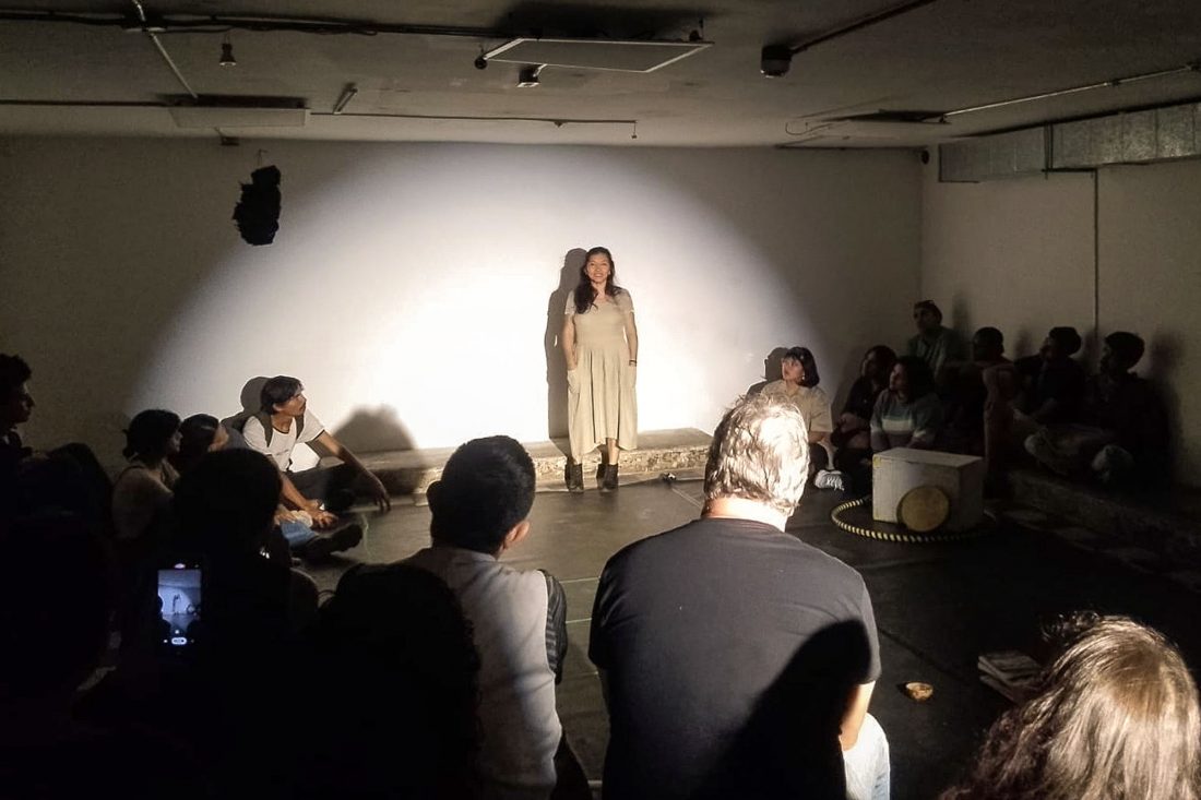 Al mediodía de este miércoles 12 de febrero, en las bóvedas del CIF del MZ14 UArtes, la artista y maestranda Mirella Cercado presentó “Bitácoras en escena: escenificando la docuficción”, la cual concibió como una experiencia escénica que explora las intersecciones entre la memoria personal, familiar y las vivencias de estudiantes en comunidades rurales de Ecuador. Su presentación la inició contándole al público su labor docente allí desempeñada y que lo que expondría era el resultado de un año de investigaciones.