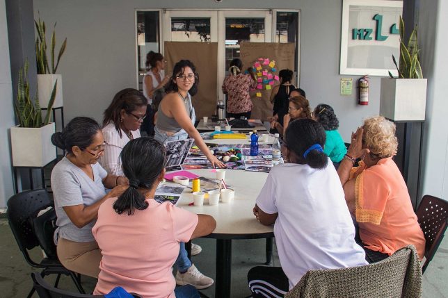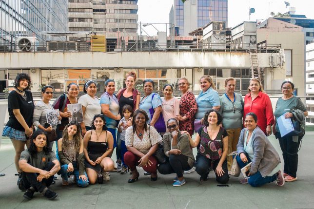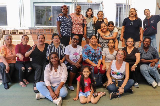Junto con Briceño y las mujeres lideresas participantes, en el taller dictado por Zozaya tomaron parte las docentes UArtes Ana Carrillo y Analy de la Vera, así como lxs estudiantes Sumaya Veas, Carmelo Plúas, Stephanie Delgado y Gigi Contero, y la alumnus Katherine Noguera.