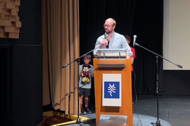 En el auditorio y antes de que las proyecciones se vieran en pantalla, el vicerrector académico Bradley Hilgert ofreció unas palabras. Contó que estaba de vacaciones, sin embargo, no podía dejar de asistir, puesto que del cierre de Nivelación no solo disfrutaba de ver los resultados, sino del sentido de comunidad que se experimenta. No perderlo fue su recomendación al concluir su breve, pero sentida intervención.