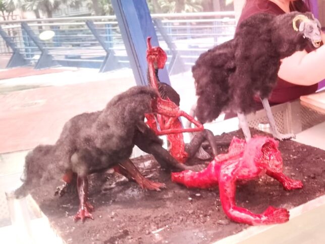 De otro de los trabajos comentó que una en la que al echarle líquido generaba formas abstractas, relacionadas por su creador con la Geología. Asimismo, los conocimientos en química del siguiente expositor –puesto que los proyectos fueron presentados de manera sucesiva– lo llevaron a trabajar visualidades de colores, mientras que un tercero, con necesidades educativas especiales (NEE), decidió personificar sus traumas en seres monstruosos.