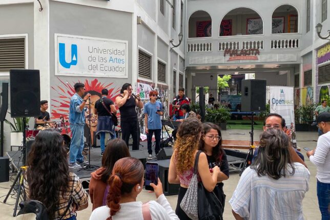 El Open MAIC, que se viene realizando desde el 2022, tiene lugar generalmente los martes (de 12:45 a 13:45), pero, acogiendo la iniciativa de la Dirección de Comunicación UArtes de dar con música la bienvenida a los estudiantes, la Escuela de Artes Sonoras hizo el cambio de día. Que para ellos sea un inicio de semestre significativo, dijo el docente Carlos Mejía, de la EAS, quien asumió la realización del evento junto a alumnos de primero, cuarto y sexto semestre de la carrera de Producción Musical y Sonora.