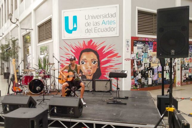 Con una guitarra al hombro, al escenario del Open MAIC subió también Althair Madroñero, quien a InfoUArtes contó que había llegado de Colombia y se hallaba completando la documentación requerida para estudiar en la UArtes, donde su padre, Mario, es docente. Reveló que al conocer de la actividad musical que dio la bienvenida al nuevo semestre decidió acudir al Pasaje Illingworth e interpretar dos temas del argentino Luis Alberto Spinetta: “Los libros de la buena memoria” y “Muchacha ojos de papel”.