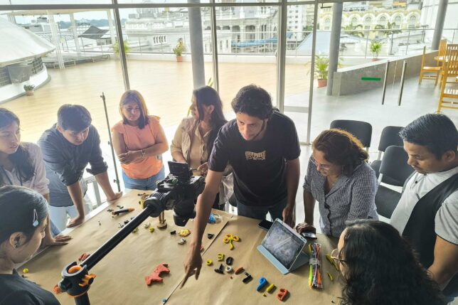 La animación en Stopmotion, explicó Samuel Saltos, es una exploración enriquecedora que desafía la imaginación y permite darle movimiento o vida a un objeto o material inerte. Ese fue de entrada el reto que planteó a los talleristas, claramente dispuestos a aprender cómo se empleaba la técnica.
