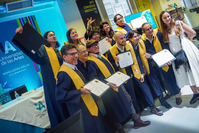 “¿Qué palabras puedo ofrecerles ahora que logren condensar los sentimientos de haber finalizado esta etapa de nuestras vidas?”. La magíster en Cine Documental Paola Espinoza Salamea inició con esa interrogante su intervención en la ceremonia de graduación en la que recibió junto con sus compañeros de carrera el título de cuarto nivel. Con ellos, los hoy también magísteres en Artes Escénicas, Composición Musical y Artes Sonoras, Fotografía y Sociedad en América Latina, y Políticas Culturales y Gestión de las Artes.