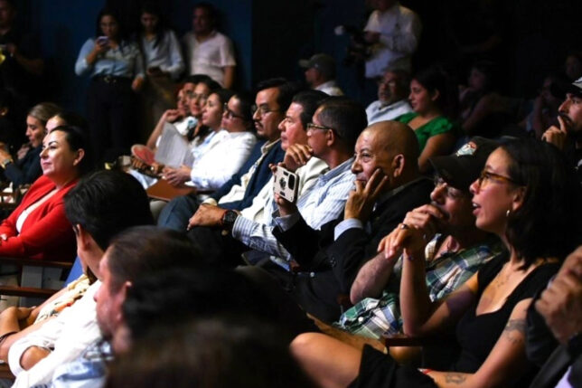 Tras agradecer el trabajo de todos los equipos de la UArtes, las otras IES y la Casa de la Cultura Núcleo de Manabí, Pablo Cardoso invitó a Fidel Intriago a intervenir. Lo hizo saludando a las autoridades y pidiendo ponerse de pie a los directores de los núcleos de Tungurahua, Orellana y Zamora presentes en la cita: en ese orden, Emilia, Nicolás y Hamilton. “(…) Nunca se me va a olvidar cuando en el discurso inaugural del cuarto encuentro, ocurrido en Cuenca el año pasado, el rector de la Universidad de las Artes preguntaba a sus pares si a ellos les ocurría lo que a él: estar justificando a cada momento frente al resto de instituciones su mera existencia. Y no, no lo hacían, como estoy seguro tampoco lo hacen las universidades aquí presentes. Una universidad pública que se especializa en profesionalizar artistas cada cierre de año tiene que pelear por sobrevivir el siguiente”.