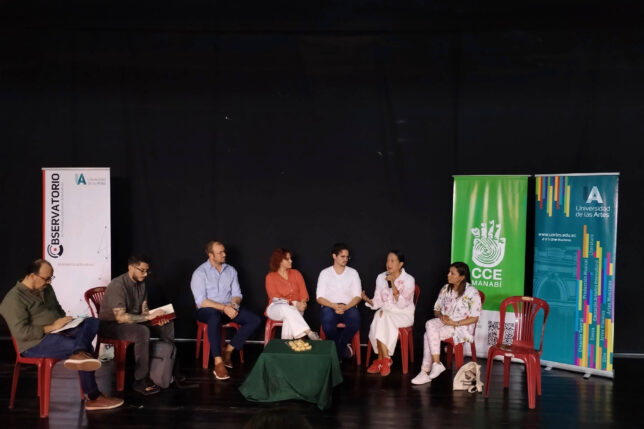 Con ellos, la presidenta de la Fundación Cultural Clave, Pía Alcívar, quien estuvo al frente de las dos jornadas del proyecto “Entre Panas Arte y espacio público: diálogos que activan la ciudad y el tejido social”, con el acompañamiento del docente UArtes Manuel Sarmiento. Igualmente, de Colombia, la presidenta del Programa IberCocinas, Mónica Pulido, quien dirigió el taller “Patrimonio alimentario y gastronómico: innovación que nace de la identidad”. José Daniel Flores, investigador y economista de la cultura con una nutrida trayectoria en el campo de las instituciones culturales en Ecuador, quien tuvo a su cargo el taller “Evaluación de políticas culturales: Política Nacional de Fomento a la Lectura, Oralidad y Acceso al Libro”. Y Wilmer Suárez, director del Observatorio Multidisciplinario de la Universidad Laica Eloy Alfaro de Manabí (ULEAM).