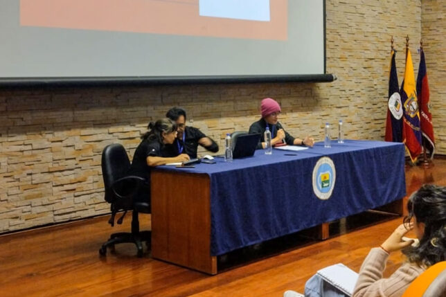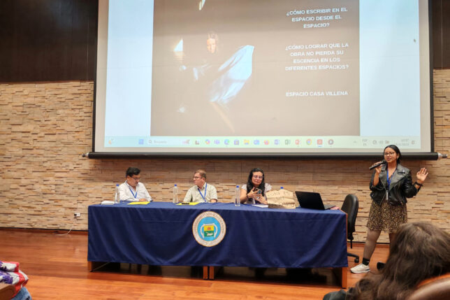 También en el primer día del congreso se expusieron los “Fracasos como aprendizajes o una reflexión a los micro-procesos de enseñanza-aprendizaje, creación/investigación, a partir del montaje ‘La Escuela Nocturna’, una adaptación de la obra dramática de Harold Pinter con los estudiantes de cuarto semestre (2024 A) de la carrera de Creación Teatral de Escuela de Artes Escénicas UArtes. Son sus autores, los estudiantes Sabaa Ester Guerrero y Kevin Mera Párraga, y el docente Juan Enrique Bautista.