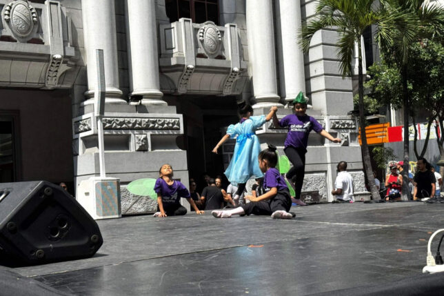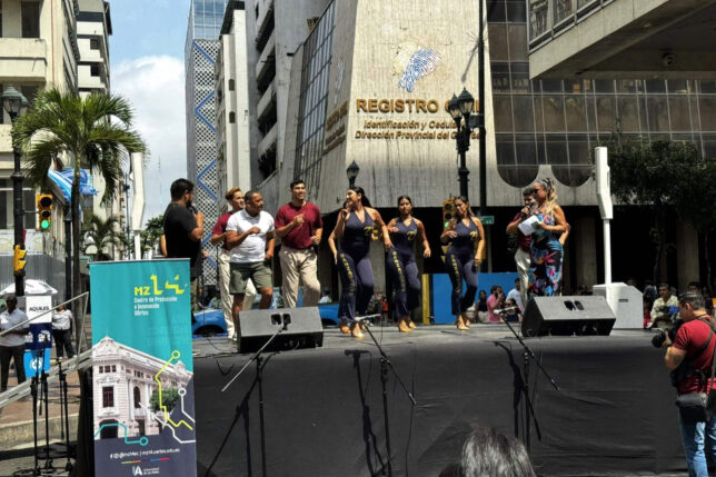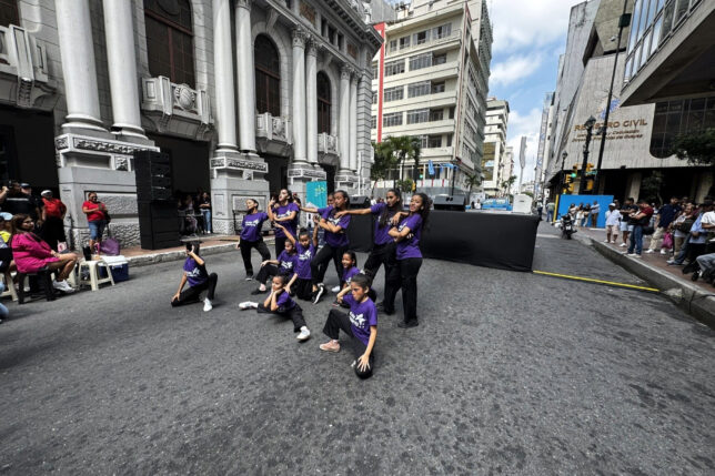 Seguidamente, y ya desde el escenario ubicado al pie del MZ14 Centro de Producción e Innovación UArtes, alumnas y maestros de la Estelar Academy y de Danza y Sabor brindaron coreografías que fueron largamente aplaudidas por una audiencia que progresivamente fue llenando la calle Panamá, desde la av. 9 de Octubre hacia P. Ycaza, Víctor Manuel Rendón, y Junín.