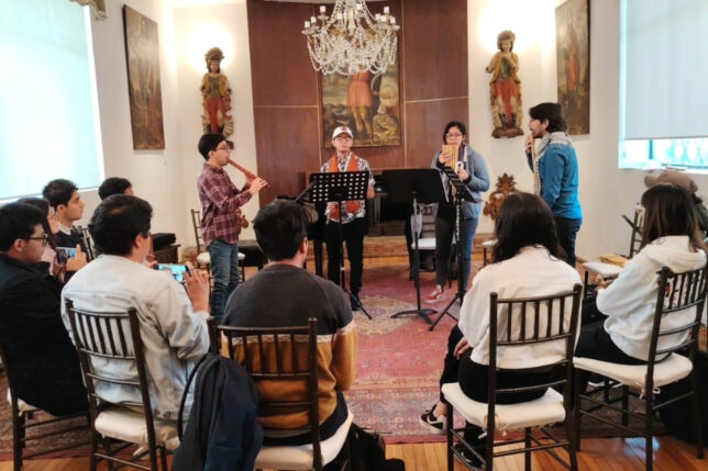 “Todo está relacionado: la Cátedra de Flauta, el proyecto de investigación, la etnomusicología. El valor agregado es porque es de las únicas agrupaciones que aplica el multiinstrumentismo, que es la facultad de dominar distintos instrumentos y nuestros estudiantes lo están haciendo. Esto es un reconocimiento de nuestro contexto, nuestra identidad, organología y música; es también una forma de difundir y proteger esas raíces tradicionales que tenemos. No es solamente importante la flauta occidental –la mayoría de instituciones imparten la flauta del desarrollo occidental europeo–; nos metemos con nuestro folklore, nuestra sonoridad y nuestros instrumentos”.