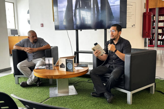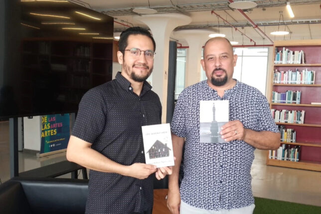 “Efecto Seda” de Pedro Mujica y “Líneas Imaginarias” de Jorge Tigrero. Los dos son libros de poesía cuyos autores, docentes de la Universidad de las Artes, presentaron recientemente en un conversatorio en el que compartieron los procesos de sus respectivas ediciones, así como varias de sus creaciones.