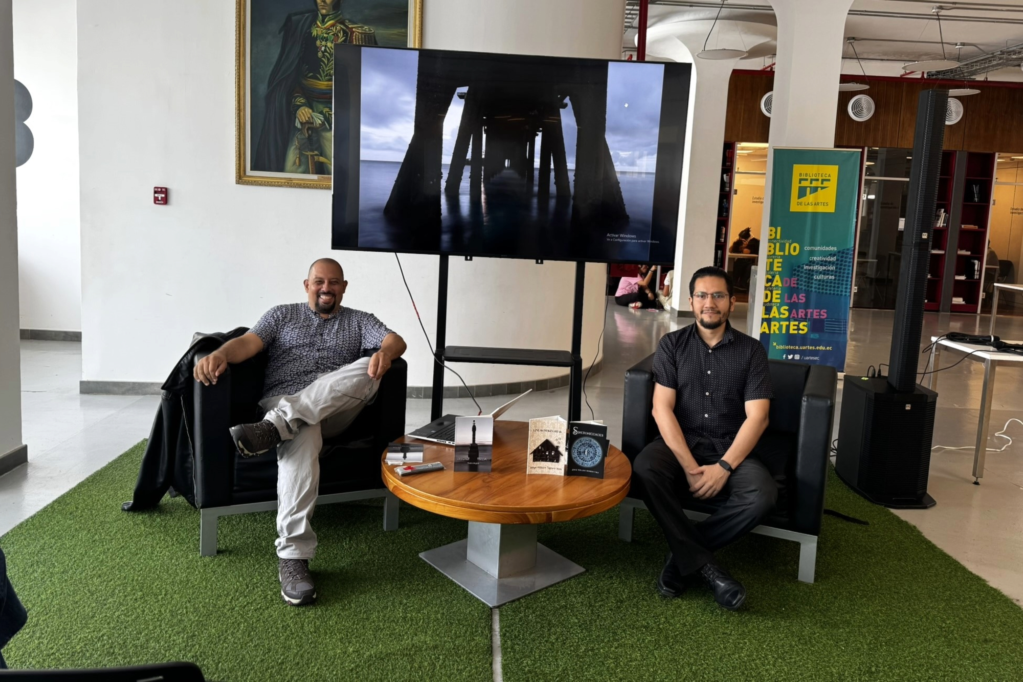 Jorge Tigrero, en su intervención, agradeció profundamente por la confianza y por el trabajo desarrollado en conjunto. “Ya son varios años no solo de compartir escritos, sino también la docencia y la investigación. Hemos tenido el apoyo de la Dirección de Políticas de Investigación en Artes, de Vinculación con la Sociedad y la Sala Ría de la Biblioteca de las Artes, donde desarrollamos talleres con nuestros estudiantes”.