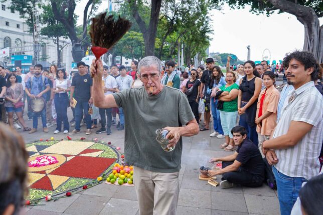La presentación del sábado 12 de julio constituyó un encuentro del arte y los saberes, la tradición y el rito. Una invitación que convocó a la comunidad universitaria y al público en general para apropiarse de la explanada que está junto al Hemiciclo de la Rotonda, en el Malecón Simón Bolívar y la av. 9 de Octubre.
