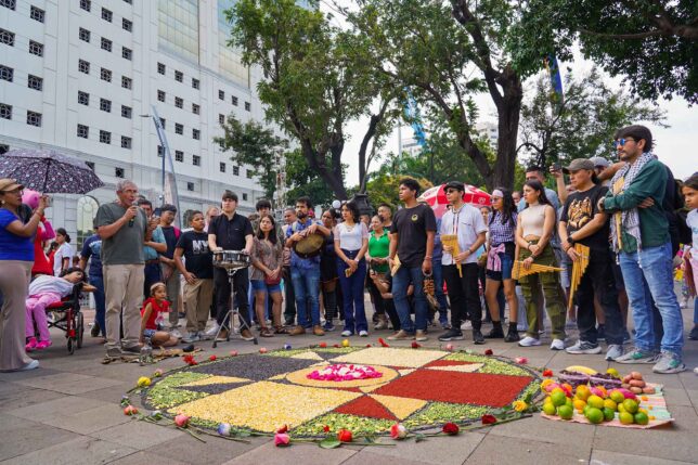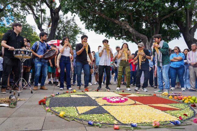 Una ceremonia tradicional en la que se elaboró en comunidad la chakana o cruz andina marcó el inicio del Festival Musical Intercultural, la primera actividad de Inter[•]actos, los encuentros públicos en artes que nuestra institución de educación superior retoma luego de seis años de pausa. En esta, su quinta edición, se desarrollarán hasta el 19 de julio talleres, mesas de diálogo, exposiciones, proyecciones cinematográficas, conciertos, presentaciones escénicas y mediación artística para infancias.