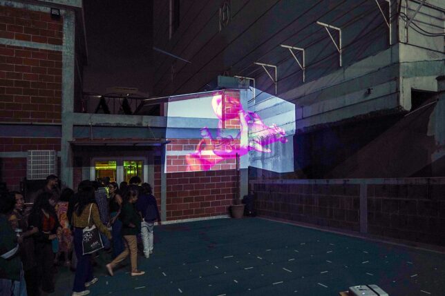 Agregó que Andrea Moreira movilizó para la muestra cuatro proyectores, seis computadoras, pedestales para los proyectores y una infinidad de extensiones. “En este tipo de práctica tecnológica hay que tomar en cuenta que, al salir del taller, del CIF y de la sala de exposiciones, enfrentamos muchos otros problemas, como los puntos de luz y el clima, y solo se consigue con un equipo que esté formado”, señaló Villavicencio.