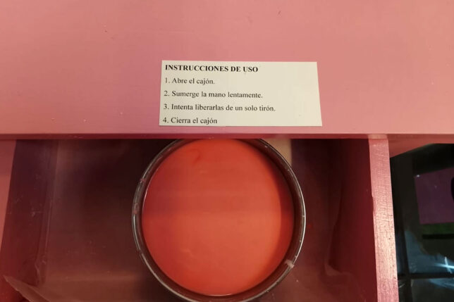 La instalación final, un Vanity completamente rosa con un espejo deformante y un cajón que, con un líquido no newtoniano, sintetizaron el concepto central de la muestra: la atracción de un mundo virtual aparentemente accesible, pero del que resulta difícil salir.