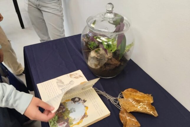 Emily Montanero expuso “El olor de tu recuento”, obra para la que utilizó granero de gato, frasco de vidrio, sustrato de tierra, plantas verdes y hojas secas, obteniendo un ensamblaje de composición aromática. En la descripción la autora señala: “Un olor revive recuerdos que el cuerpo no olvida, la tierra recibe lo que se cree perdido y lo convierte en semilla. La muerte no es el final, sino el comienzo de otra vida”.