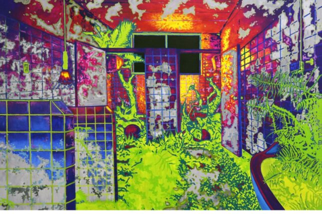 “Necrosis” se convierte, por tanto, en un término que condensa la esencia del proyecto: un diálogo entre cuerpo y arquitectura, donde el deterioro no se entiende solo como destrucción, sino como un proceso vivo que deja huellas, memoria y nuevas posibilidades de lectura sobre lo que se desvanece. “Para mí, la arquitectura funciona como un espejo del cuerpo humano: ambos se construyen, se habitan y también se deterioran. A través de la pintura, el dibujo y la escultura, no solo represento espacios en ruinas, sino que los estudio como organismos vivos. El color funciona como herramienta de diagnóstico, inspirado en imágenes médicas para revelar anomalías y fragilidades”.