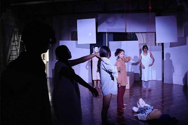 Estudiantes en proceso de titulación y graduados de varias escuelas de la Universidad de las Artes fusionaron sus talentos y saberes para llevar a escena la obra “Niña madre, Madre santa. ¿Y si la madre no fuera virgen?”, cuyo estreno están programando realizarlo en Manabí, en una fecha próxima aún por definir. No obstante, este sábado 13 de septiembre tendrán un ensayo abierto, a las 19:00, en la Plaza Pública del MZ14 Centro de Producción e Innovación de la Universidad de las Artes.
