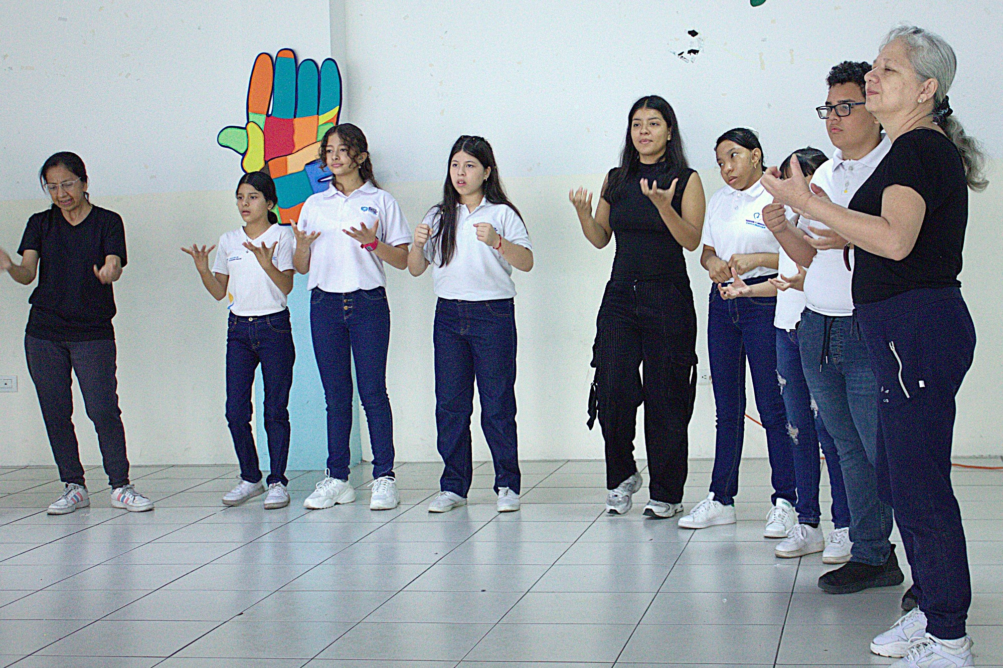 Para la visita, que se realizó este martes 23 de septiembre, en el Día de la Lengua de Señas, los estudiantes UArtes crearon –bajo la dirección de Giovanna Ricaurte de la DAEA– un coro de Lengua de Señas y presentaron la canción “Color Esperanza” del cantautor argentino Diego Torres. Félix Herrera de la Escuela de Cine y Génesis Coll de Literatura, presentaron el sketch de mimo “La belleza interior”, con un mensaje final muy emotivo en lengua de señas.