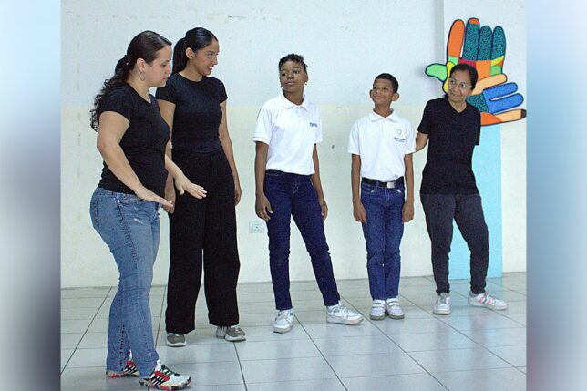 Con motivo de conmemorar la Semana Internacional de las Personas Sordas, estudiantes de la Universidad de las Artes que participaron en el curso “Herramientas básicas de comunicación en Lengua de Señas Ecuatoriana en entornos universitarios”, dictado por la Dirección de Acompañamiento al Éxito Académico (DAEA) e impartido por el alumno e instructor sordo Wilson Vélez, visitaron la Escuela Municipal de Audición y Lenguaje de niños y niñas con discapacidad Auditiva y TEA.