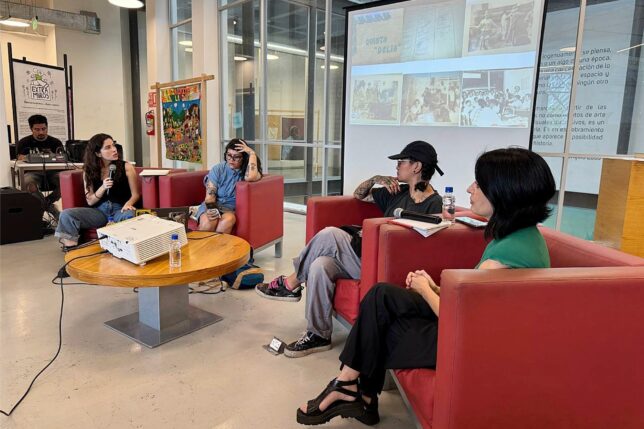 Justamente, las alumni mencionadas por Mafo López participaron en el diálogo propuesto junto con la también docente UArtes, Natalia Marcos, licenciada en Sociología por la Universidad de Buenos Aires, magíster en Estudios de la Cultura por la Universidad Andina Simón Bolívar de Ecuador e investigadora cuyas áreas de trabajo y activismo se encuentran en los estudios políticos y culturales latinoamericanos, estudios de género y luchas feministas en América Latina.