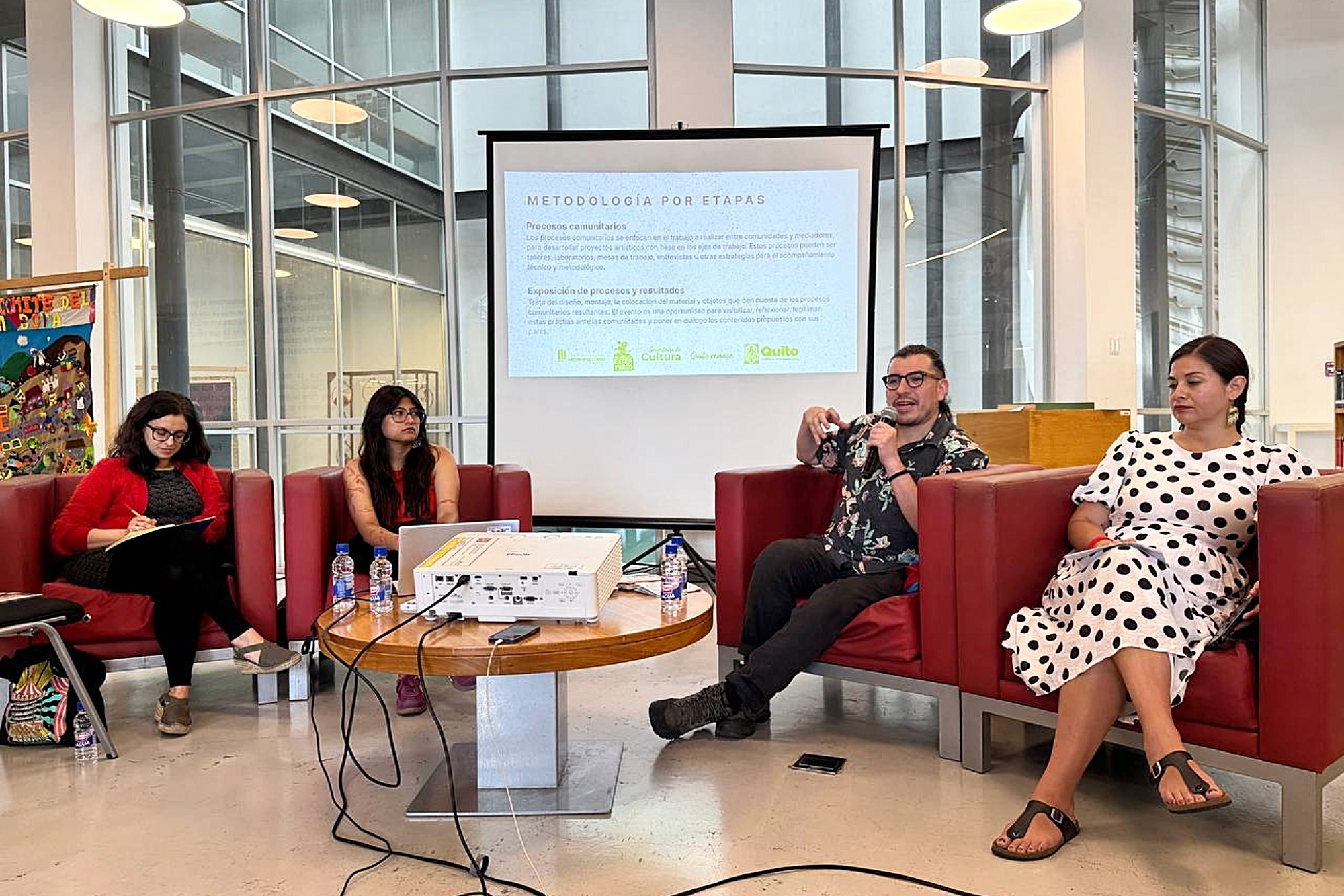 Herrera, por su parte, se refirió en su intervención a las exposiciones itinerantes a las que, de manera conjunta, le dieron el nombre de “Seguimos siendo”. El propósito de la propuesta, dijo, fue visibilizar la memoria, la cultura y el territorio de comunidades del Distrito Metropolitano de Quito, como La Bota, Cotocollao, Pisulí y Collas. La propuesta artística y comunitaria incluyó elementos como manifiestos gráficos, cartografías sonoras y documentación audiovisual, y se desarrolló mediante talleres colectivos en los que sus participantes reafirmaron su identidad y presencia social.