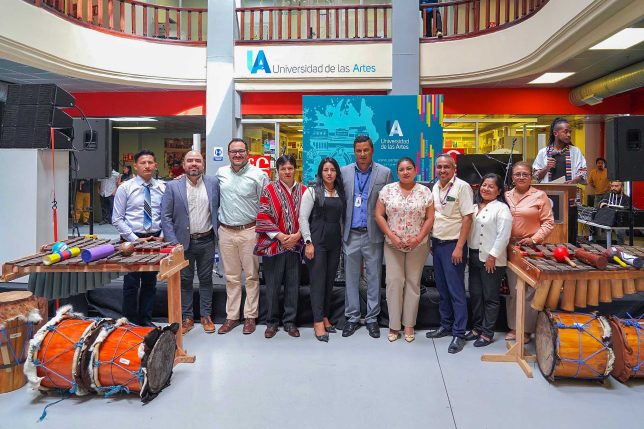 En la Plaza Pública del MZ14 Centro de Producción e Innovación UArtes, nuestra institución de educación superior realizó la tarde de ayer, 15 de octubre de 2025, la entrega, en calidad de donación, de instrumentos de música ancestral afroesmeraldeña a la Secretaría de Educación Intercultural Bilingüe y la Etnoeducación (SEIBE), con la que también se firmó un Convenio Marco de Cooperación Interinstitucional.