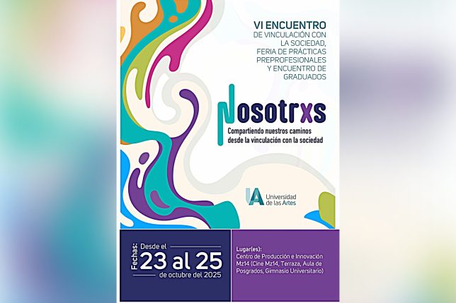 La Universidad de las Artes está presente en la XVII Bienal de Cuenca que se inaugurará este 24 de octubre de 2025 y mantendrá hasta el 1 de febrero de 2026. La vicerrectora de Posgrados e Investigación en Artes, Dra. Ana Gabriela Rivadeneira, integra junto al Dr. Saidel Brito, docente UArtes, el jurado de selección, en tanto que los también artistas y académicos Ilich Castillo y Gabriela Fabre están en la competencia.