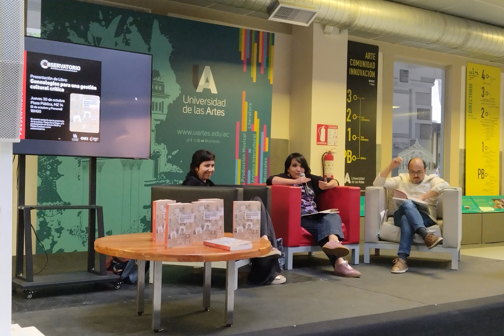 Generar un debate y propuestas en torno a la defensa de los derechos culturales de la Constitución de 2008 es el objetivo de las jornadas se citó en el diálogo, que contó con las participaciones de Pablo Cardoso, director del Observatorio UArtes, y la docente Grecia Albán.