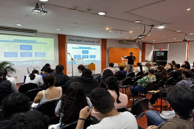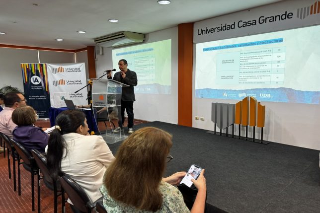 Antes de dar a conocer el desarrollo y la estructura de la investigación en la Universidad de las Artes –con sus procesos, proyectos y resultados–, el doctor Luis Pérez-Valero, director de Políticas de Investigación en Artes, comentó que Guayaquil es desde hace 16 años su ciudad de acogida, que era la primera vez que entraba a la Universidad de Casa Grande y que ocurriría lo mismo, por la tarde, al acudir a la Universidad del Río. Sucedió el jueves 6 de noviembre en la I Jornada Interuniversitaria de Divulgación de Proyectos de Investigación y Vinculación con la Sociedad que realizaron las tres IES en sus instalaciones y que se extendió hasta el viernes 7