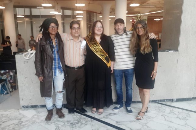 Dos de los diez poemas contenidos en “Forajidas”, el poemario con el que Paola Salazar participó en el certamen, fueron leídos por su autora, quien fue sorprendida por sus compañeros, quienes la llenaron de flores, le leyeron un poema, le regalaron un collage, pues ella es collagista, y compartieron su emoción por ganar el concurso.