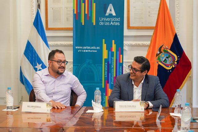 William Herrera concluyó el acto agradeciendo el apoyo y la gestión. Expresó ser testigo del trabajo desarrollado por el doctor Beltrán y que hay algunos proyectos en curso. El primer Doctorado en Artes del país va a ser histórico tanto para la Universidad de las Artes como para el sistema de educación superior y el CES. Se ha hecho un trabajo de avanzada con Paúl Medina, dijo, señalando, además, que el presidente del CES está impulsando un proyecto muy importante: los clusters. Allí hay también un desafío para crear el mecanismo y la forma para que las artes y la creación tengan su espacio en la distribución de los clusters.