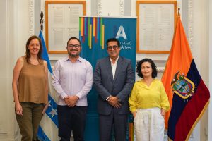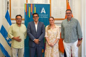 Como un momento simbólico de reconocimiento y agradecimiento al Consejo de Educación Superior (CES) por la apertura y el apoyo brindados a la Universidad de las Artes señaló nuestro rector, doctor William Herrera, a la reunión que propició este lunes 8 de diciembre con el presidente del ente, Dr. Pablo Beltrán; las vicerrectoras, Dras. Olga López y Ana Gabriela Rivadeneira; y las nuevas máximas autoridades UArtes, elegidas mediante sufragio el 2 de este mes: doctores Saidel Brito, Yulianela Pérez y Andrey Astaiza.