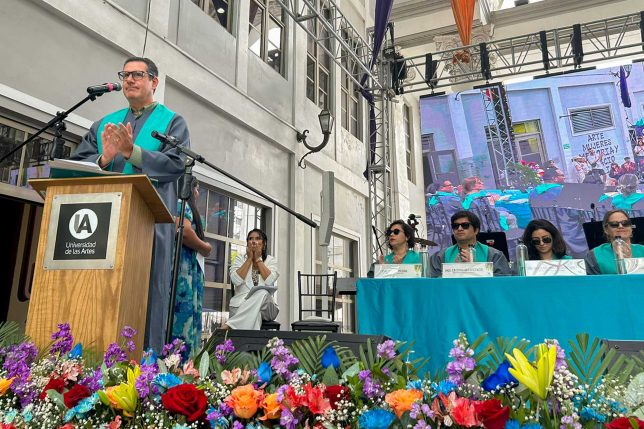 El rector electo confesó que cuando empezó a estudiar artes hace 40 años –en 1985– también creía que el arte era crear objetos, edificar cosas bellas o medianamente bellas, y expresarlas únicamente desde un horizonte individual. Entonces conoció a artistas como Joseph Kosuth y Beuys, y entendió que el arte y la creación se trataba y tratará de intentar sanar al mundo. “El arte como proceso de sanación de la sociedad. Y esa idea la aprendí precisamente en la universidad. Como cuando una canción te rompe el alma sin avisar, o una imagen te devuelve infancia y dolores que creíamos perdidos, olvidados; o como cuando algo que no entiendes del todo te transforma. Y eso, precisamente eso, es el milagro de las carreras que vinieron a estudiar en la Universidad de las Artes”.