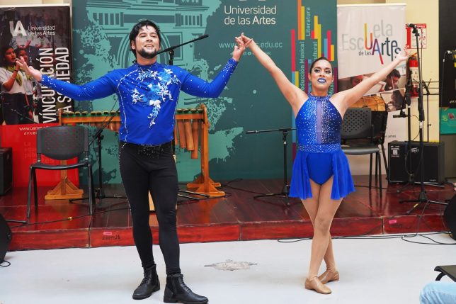 En la segunda intervención artística UAlumni se presentaron: “Dinosaurios de colores”, con Samantha Caballero, Roger Sandoval, Juan Diego Navia y Sebastián Mancilla; responsable Samantha Caballero. Ensamble coral del taller “Cantares de mi tierra” de los adultos mayores del ISSFA; responsable, Evelyn Morán. Lectura de poemas “Voces que perduran” de los adultos mayores de la parroquia La Victoria; responsable, Ana Espinoza. Ensamble musical “Percusión y raíces” de los niños, niñas y adolescentes del cantón Marcelino Maridueña. Ensamble de percusión corporal y vocal “Fiesta, fuerza y emoción” de los niños, niñas de la parroquia La Victoria. Danza afroecuatoriana “Torbellino” de los adolescentes de la Fundación Minkayni e interpretación de “Maikel, tu vida es bandera”, con Amalia Quintero. Testimonio de la experiencia “Escuela de las Artes” por Kenny Domínguez e Isaías Achiote de la Comuna Isla Santay. Como tercera intervención artística UAlumni se presentó “Circo para dos”, com Belén Villalba. Y, en la cuarta intervención artística UAlumni, el hoy licenciado en Artes Sonoras Víctor Espinosa brindó su show musical como Vatiix.