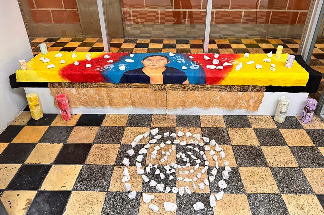 En la instalación que hizo en su honor destacó su imagen y varios aspectos que evidenciaran sus muestras de cariño. La trabajó con mucho color, pues es su característica. También trató de representar lo que la gente, tal vez, no ve: el aura. “Hay mucho color que no siempre son por alegría y conciliación; también, como en toda familia, hay roces, a los cuales igualmente le pongo color”.