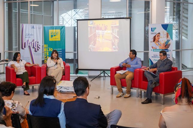 “Bibliotecas que evolucionan: Acceso digital y desarrollo profesional”. El tema se abordó en la mesa de diálogo realizada durante la jornada con la cual el repositorio de la Universidad de las Artes conmemoró el Día del Bibliotecario Ecuatoriano; en el país, la fecha se celebra cada 21 de febrero en honor al nacimiento de Eugenio Espejo, prócer y primer bibliotecario de la Biblioteca Pública de Quito en 1791.