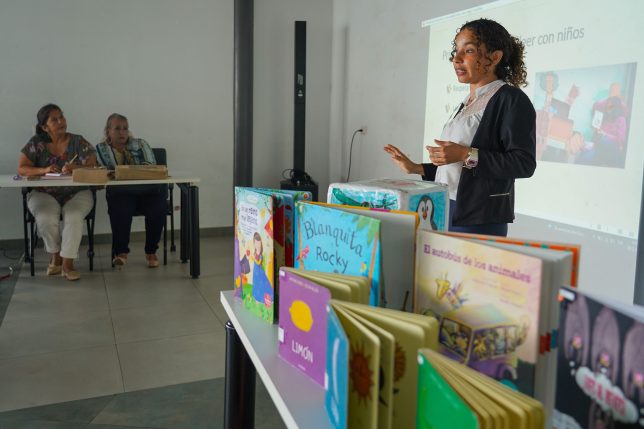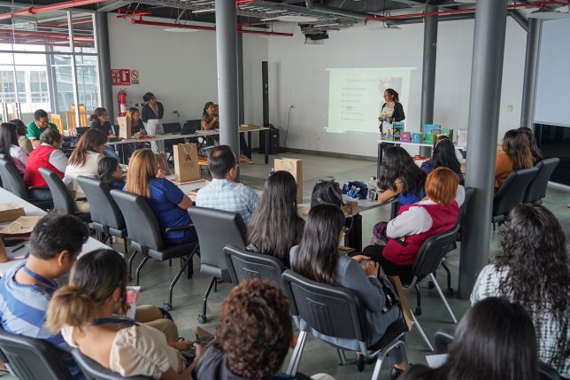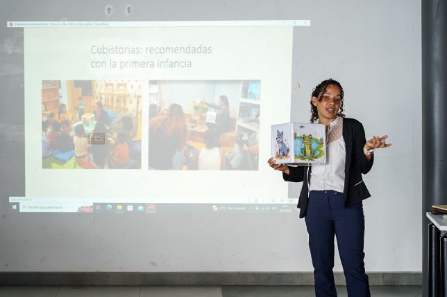 Justamente, de la labor cumplida y de la que está en ejecución, Jacqueline Loor compartió el taller “Cómo leer con niños y niñas, las didácticas y los juegos de mediación”. Se desarrolló el jueves 26 de febrero, en la Sala Multifuncional del repositorio UArtes y constó en la jornada “Bibliotecas en movimiento: Innovación digital, literatura y mediación lectora”.