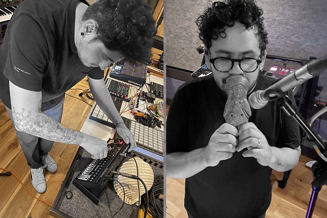 Pero ¿qué es “Kuraka”? Es el dúo que ambos han conformado y cuya práctica se sitúa en la intersección entre la etnomusicología, el arte sonoro y la electrónica improvisada en vivo. Es a partir de objetos sonoros ancestrales, instrumentos andinos y síntesis modular que se construyen presentaciones que están enraizadas en la tradición y orientadas hacia la práctica experimental contemporánea. Su sonido mezcla texturas profundas, ritmos envolventes y exploraciones electrónicas que recontextualizan la música ecuatoriana hacia un estilo experimental contemporáneo.