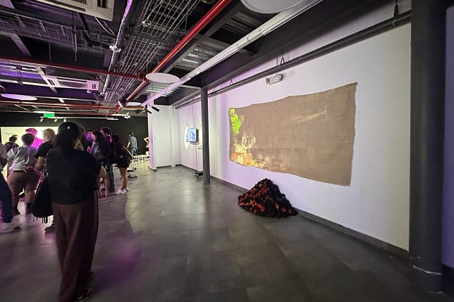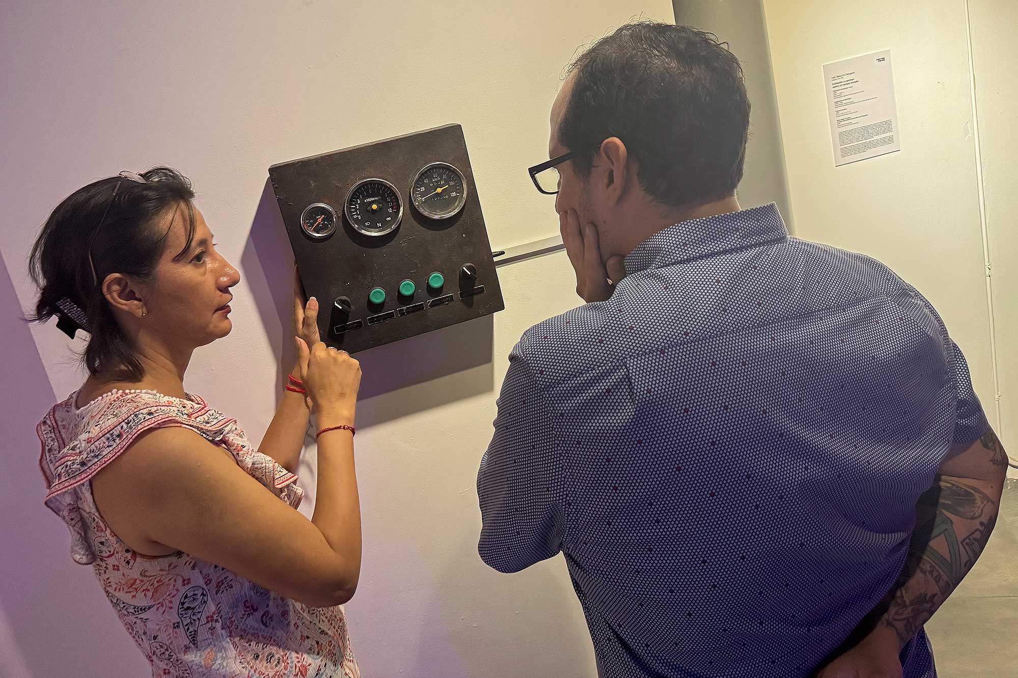 Texto: Carmen Cortez/Dircom. Fotos: Tyrone Maridueña/Dircom. En la portada, la artista Silvia (Syl) Quezada en la inauguración de la muestra, en la Galería 4ta. Pared; le siguen imágenes del mismo evento. Sobre estas líneas, la doctora Ana Gabriela Rivadeneira, directora de la Escuela de Posgrados UArtes, recorriendo la propuesta expositiva.