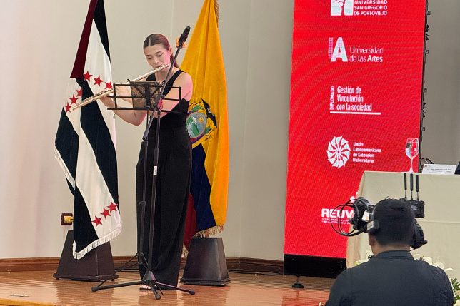 Vale anotar que, durante el acto, se presentó en pantalla a los docentes que tuvo el diplomado, entre los académicos la magíster María José Icaza, de la UArtes, y se mostró a varios de los diplomantes que siguieron la entrega de certificados de manera online; hubo también la presentación artística de Paula Navia, flautista de la Academia d’arte Appassionato, quien interpretó el bolero “Sin ti”, de Pepe Guizar, y el pasillo “Alma en los labios”, de Medardo Ángel Silva (bajo estas líneas las imágenes de los profesores y la música mencionados).