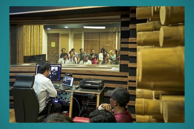 Texto y fotos: Dario Dávalos/Escuela de Artes Sonoras. En la imagen de portada, Dario Dávalos en uno de los estudios de grabación de la UArtes. La siguiente corresponde también a su labor en el área mencionada; sobre estas líneas, algunos de los pasos que dio en el proceso de su proyecto de investigación “Perspectivas”.