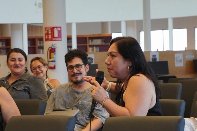 El conversatorio de la autora de “Más sin nombre que nunca”, “Turba de signos”, “Dar con ella” y “Boomerang” estuvo a cargo de las también escritoras ecuatorianas Cecilia Velasco y María Paulina Briones, docentes de la Escuela de Literatura de la Universidad de las Artes.
