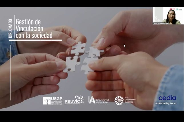 Con 116 profesionales se dio inicio este martes 11 de noviembre al primero de seis módulos del Diplomado de Gestión de Vinculación con la Sociedad, iniciativa conjunta de la Universidad de las Artes (UArtes) y la Universidad San Gregorio de Portoviejo (USGP); tiene respaldo de la Reuvic (Red Ecuatoriana Universitaria de Vinculación con la Colectividad) y de la ULEU (Unión Latinoamericana de Extensión Universitaria).