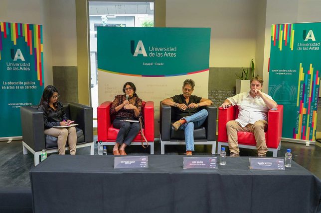 “Dislocar” y “Pacha” fueron los proyectos de investigación y vínculo que la Universidad de las Artes presentó la mañana del 6 de noviembre en la sesión inaugural de la I Jornada Interuniversitaria que nos reunió con Casa Grande, anfitriona de esa primera cita, y Universidad del Río. Por la tarde, y desde la UDR, de nuestra institución se abordaron “Derivas” y “Encarnar el saber”. De las otras IES también hubo exposiciones.