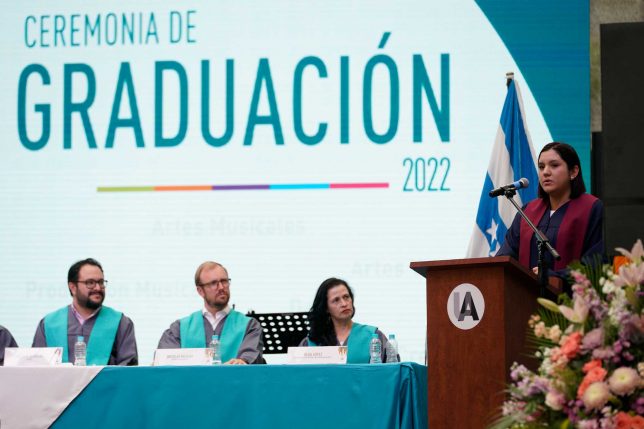 “Que el arte siga siendo una fuente de inspiración para todos ustedes”. Con voz entrecortada Dominik Erazo, licenciada por la Escuela de Cine, concluyó con este deseo el discurso que dirigió a sus compañeros en la ceremonia de graduación de la Universidad de las Artes, este sábado 10 de diciembre de 2022. Por su alto promedio general de grado la ahora alumnus recibió el reconocimiento cum laude.