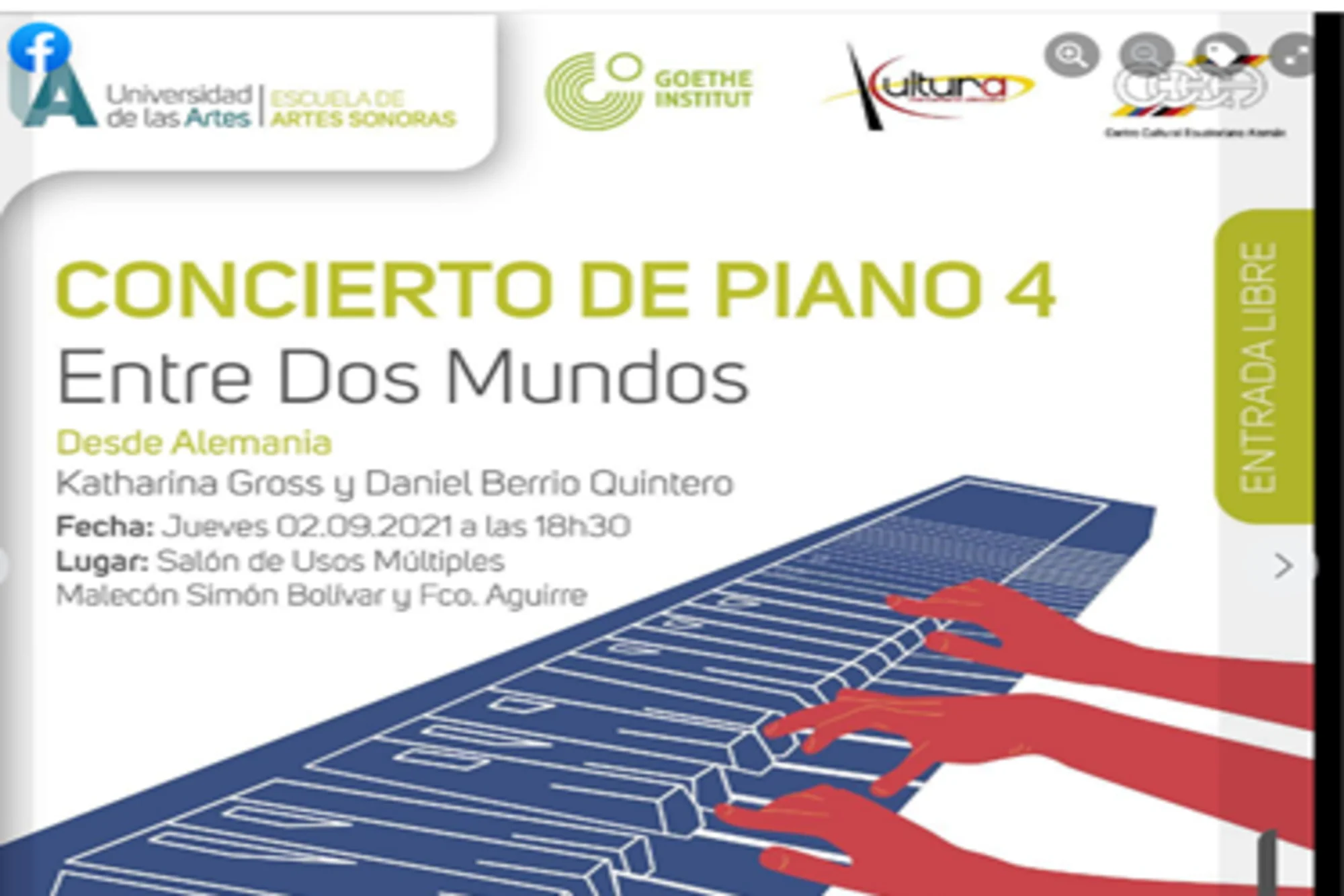 Los salones Patrimonial del Centro de Producción e Innovación MZ14 y de Usos Múltiples del Pabellón Araceli Gilbert serán los escenarios donde este 2 de septiembre la Escuela de Artes Sonoras presentará a los estudiantes del Área de Canto con el recital “Del barroco a lo popular” y el “Concierto de Piano 4 Encuentro de dos mundos, desde Alemania”, con Katharina Gross y Daniel Berrio Quintero. Tendrán lugar a las 17:00 y 18:30, respectivamente.
